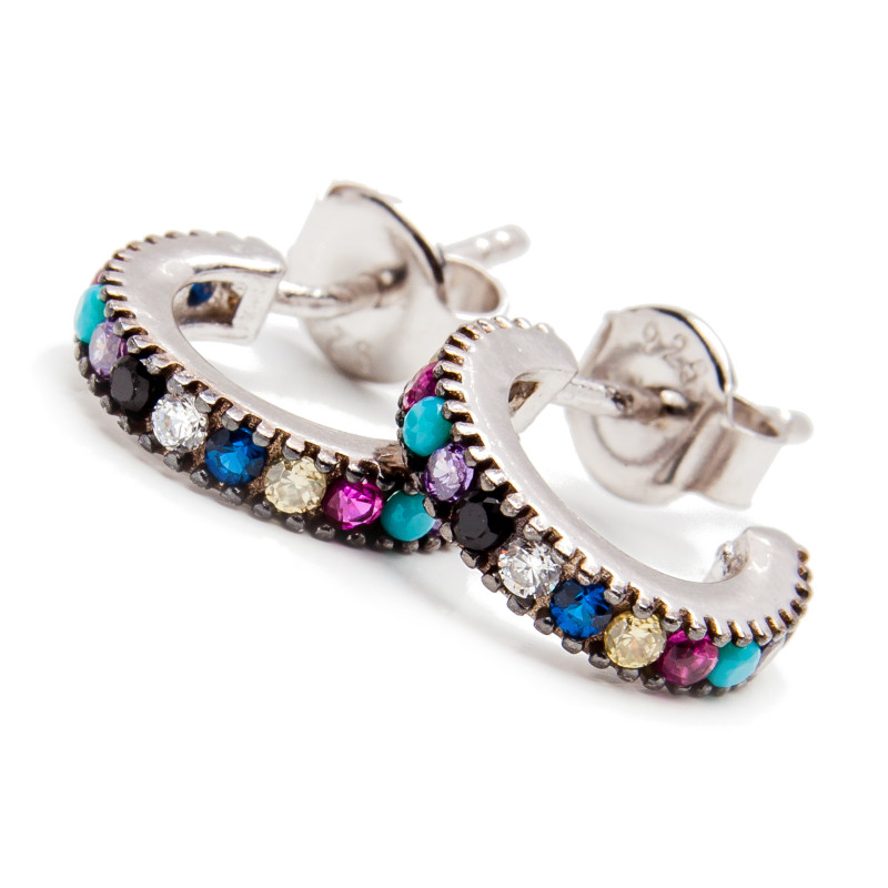 Srebrne kolczyki z kolorowymi cyrkoniami