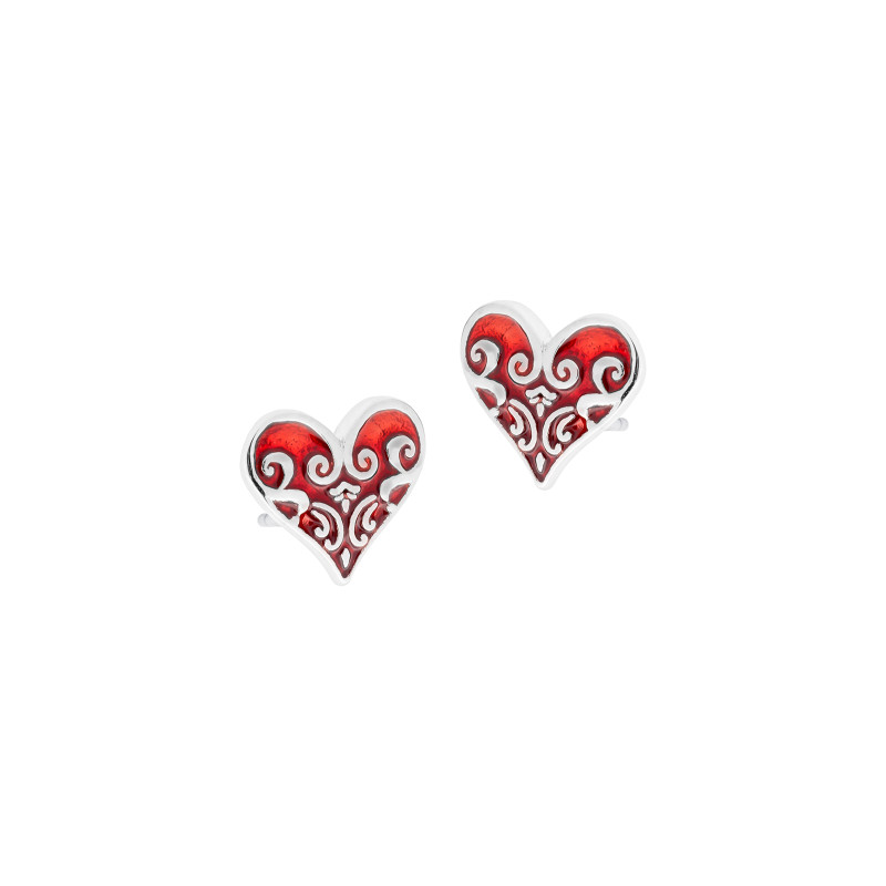 Dodaj odrobinę romantyzmu dzięki srebrnym kolczykom w kształcie czerwonego serca, wykonanym ze srebra próby 925.