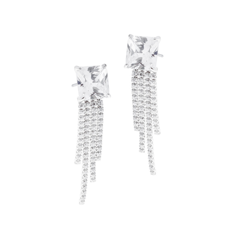 Wprowadź spektakularny blask do swojej biżuterii dzięki srebrnym kolczykom z dużą, kwadratową cyrkonią, wykonanym ze srebra próby 925.