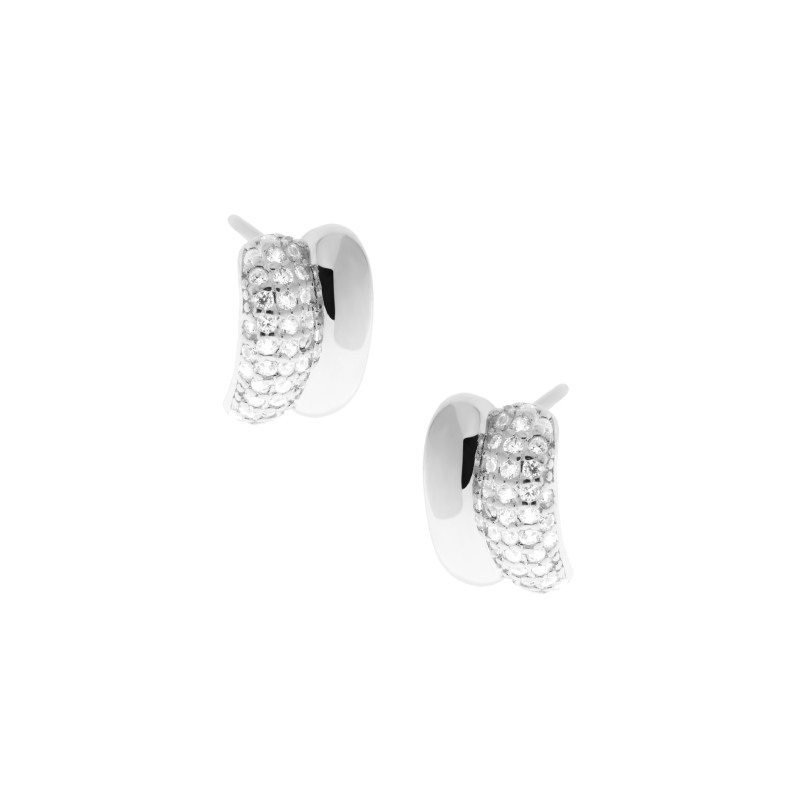 Te eleganckie kolczyki składają się z dwóch równoległych pasków – jeden gładki, drugi ozdobiony drobnymi cyrkoniami, które tworzą efekt subtelnego, piaskowego połysku. Wykonane w całości ze srebra próby 925, łączą trwałość z klasycznym, srebrzystym blaskiem. Minimalistyczny, nowoczesny design sprawia, że kolczyki pasują zarówno do codziennych, jak i wieczorowych stylizacji. Lekka konstrukcja zapewnia wygodę noszenia przez cały dzień. Delikatny kontrast między gładkim paskiem a błyszczącym w cyrkoniach dodaje biżuterii elegancji i wyrafinowania. To uniwersalny i efektowny dodatek, który świetnie sprawdzi się również jako prezent.