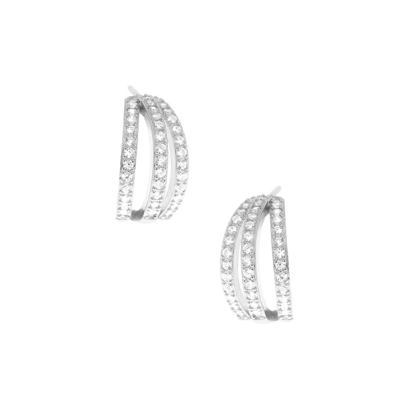 Subtelne sztyfty ze srebra próby 925 w kształcie łódeczki, wykonane z trzech pasków drobnych cyrkonii. Delikatny, harmonijny układ kamieni tworzy elegancki, migoczący efekt, który przyciąga wzrok, a jednocześnie pozostaje minimalistyczny i nowoczesny. Idealne do codziennych stylizacji oraz na wyjątkowe okazje.