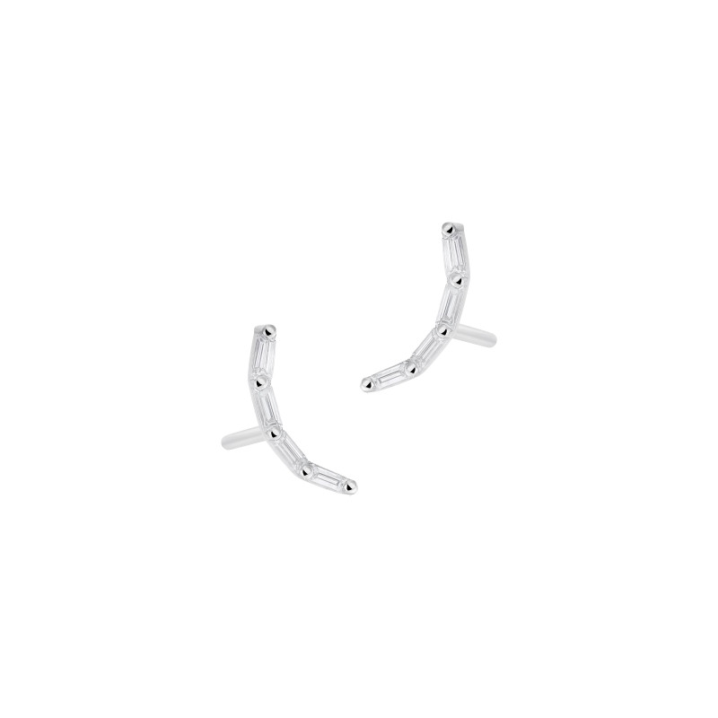 Urocze kolczyki sztyfty z wygiętym paskiem ozdobionym białymi cyrkoniami, wykonane ze srebra próby 925, które dodają eleganckiego i subtelnego blasku. Idealne na co dzień oraz jako wyjątkowy prezent, lekkie i wygodne, pięknie podkreślają każdy styl.