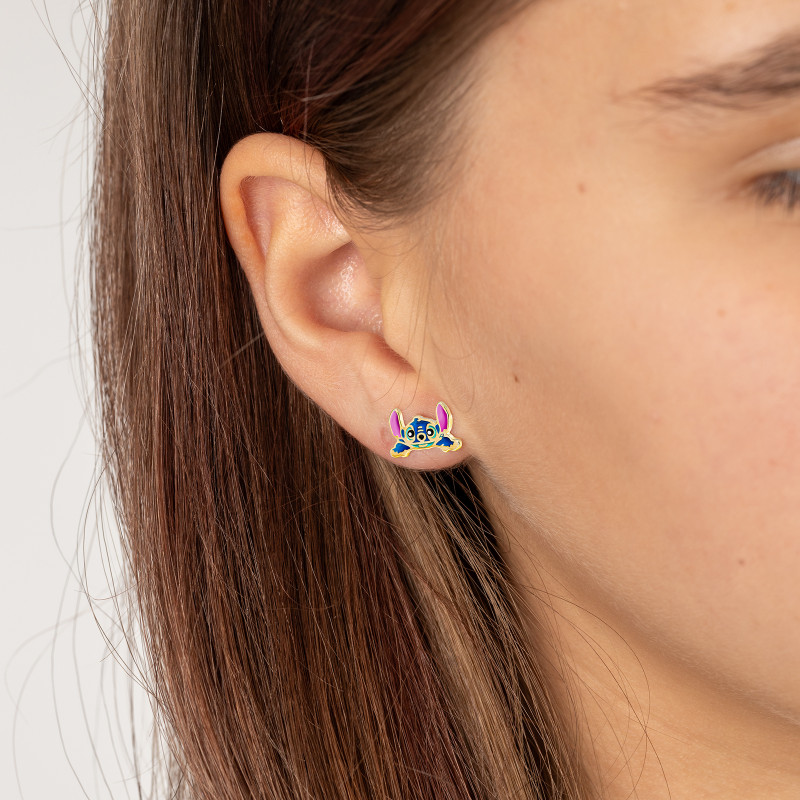 Pozłacane kolczyki srebrne 925 z emalią Leżący Stich dla małej damy PREZENT