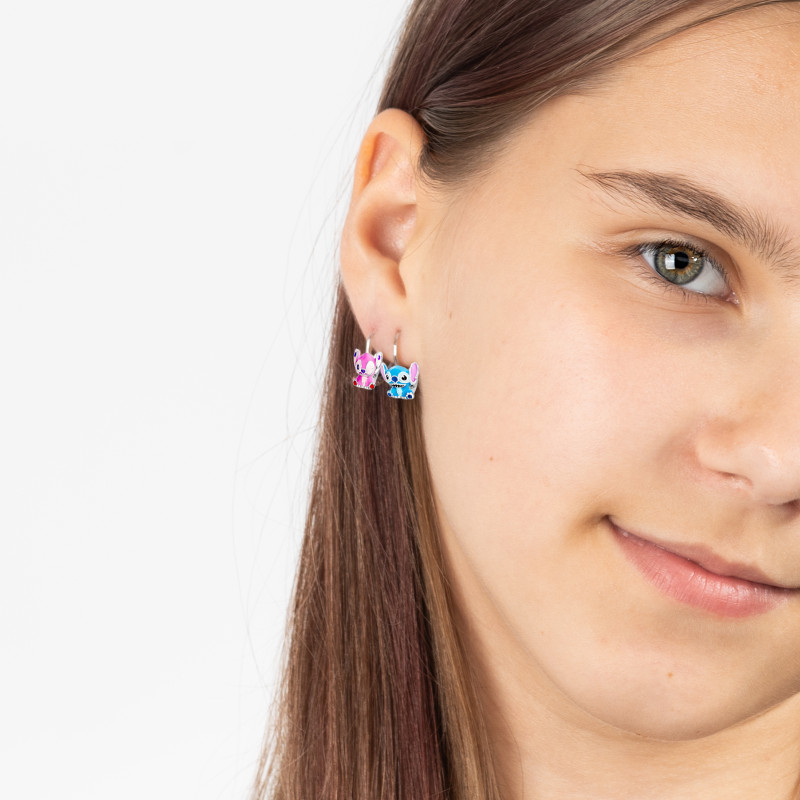 Uśmiech na twarzy dziecka jest najważniejszy... Z tymi uroczymi kolczykami uśmiech jest gwarantowany. Stich&Angel to uroczy niebieski i różowy stworek, który z wielką chęcią zamieszka na Twoich uszach...