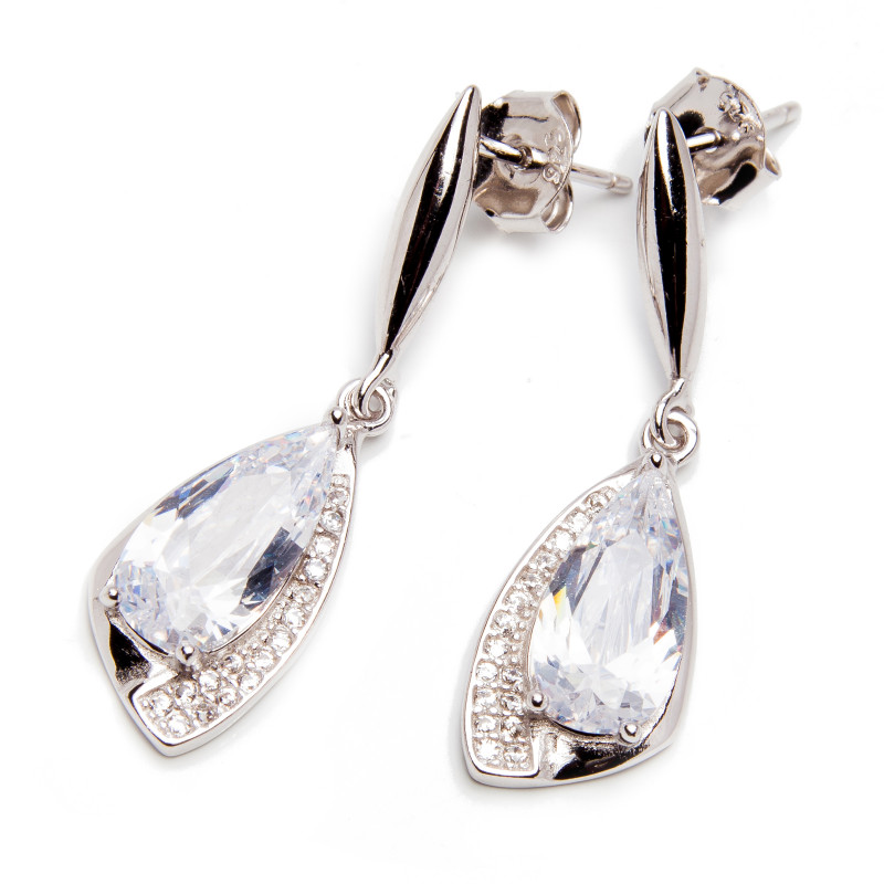 Srebrne kolczyki z białymi cyrkoniami. Wykonane z lśniącego srebra próba 925. Fabrycznie nowe.