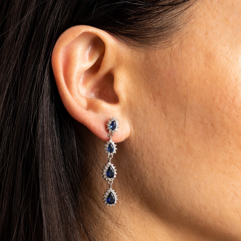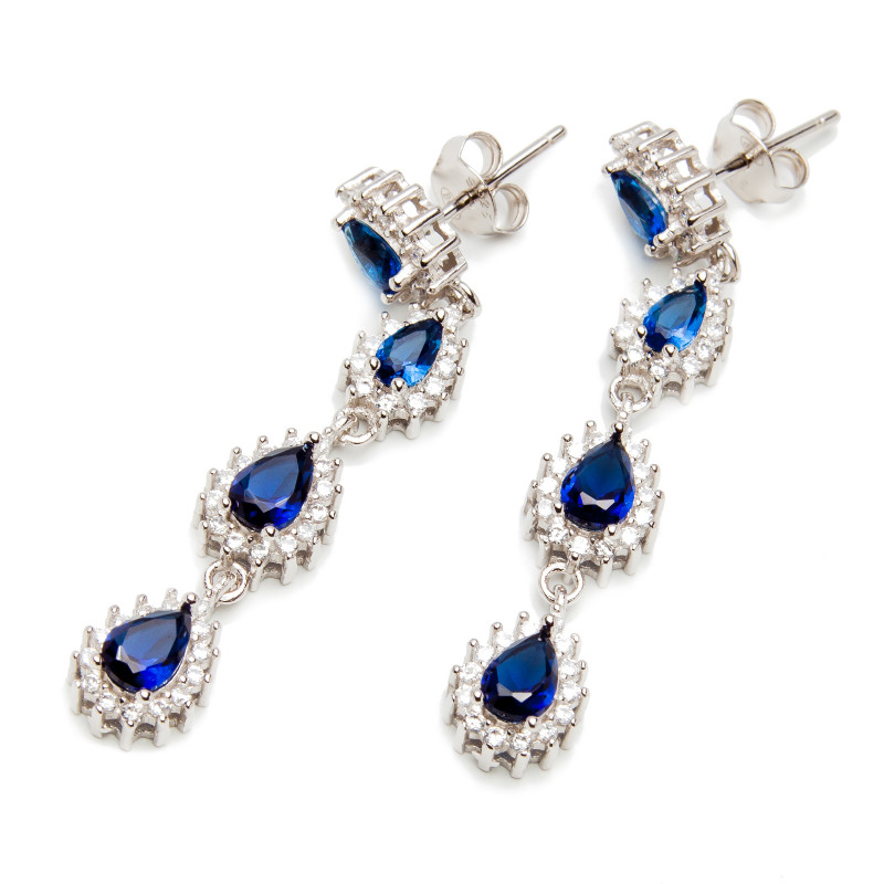 Srebrne kolczyki 925 wiszące niebieskie cyrkonie