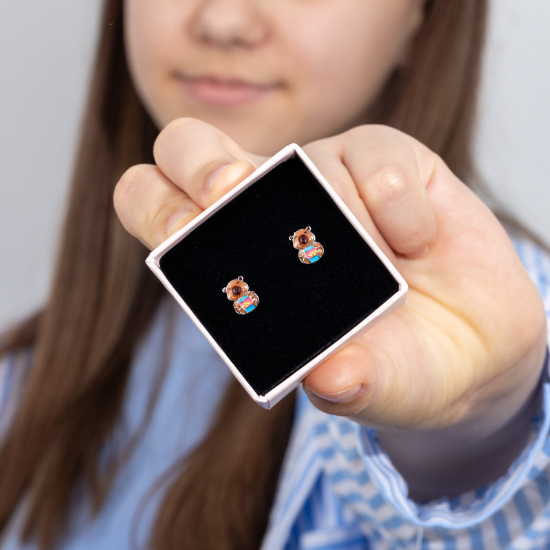Podaruj swojej małej księżniczce coś wyjątkowego! Srebrne kolczyki 925 z emalią przedstawiającą uroczy wizerunek Kapibary, to idealny prezent na każdą okazję. Te delikatne, lecz wyraziste kolczyki są wykonane z najwyższej jakości srebra próby 925, gwarantując trwałość i bezpieczeństwo dla delikatnej skóry dziecka.