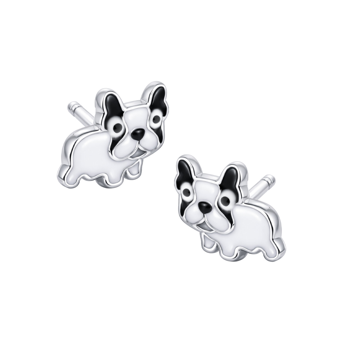 Urocze kolczyki typu sztyft wykonane ze srebra próby 925, stworzone z myślą o małej damie, która kocha pieski i wyjątkową biżuterię. Motyw buldoga nadaje im niepowtarzalnego charakteru, a jednocześnie zachowuje delikatny, dziewczęcy styl.