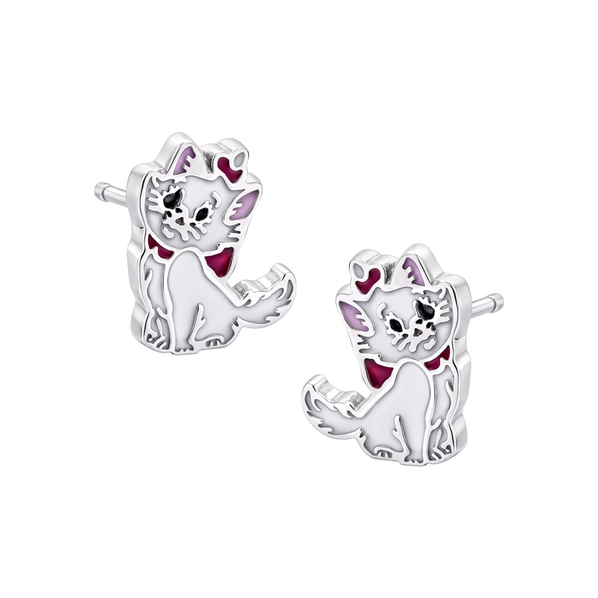 Srebrne kolczyki 925 Kotek z kokardką dla małej damy sztyft
