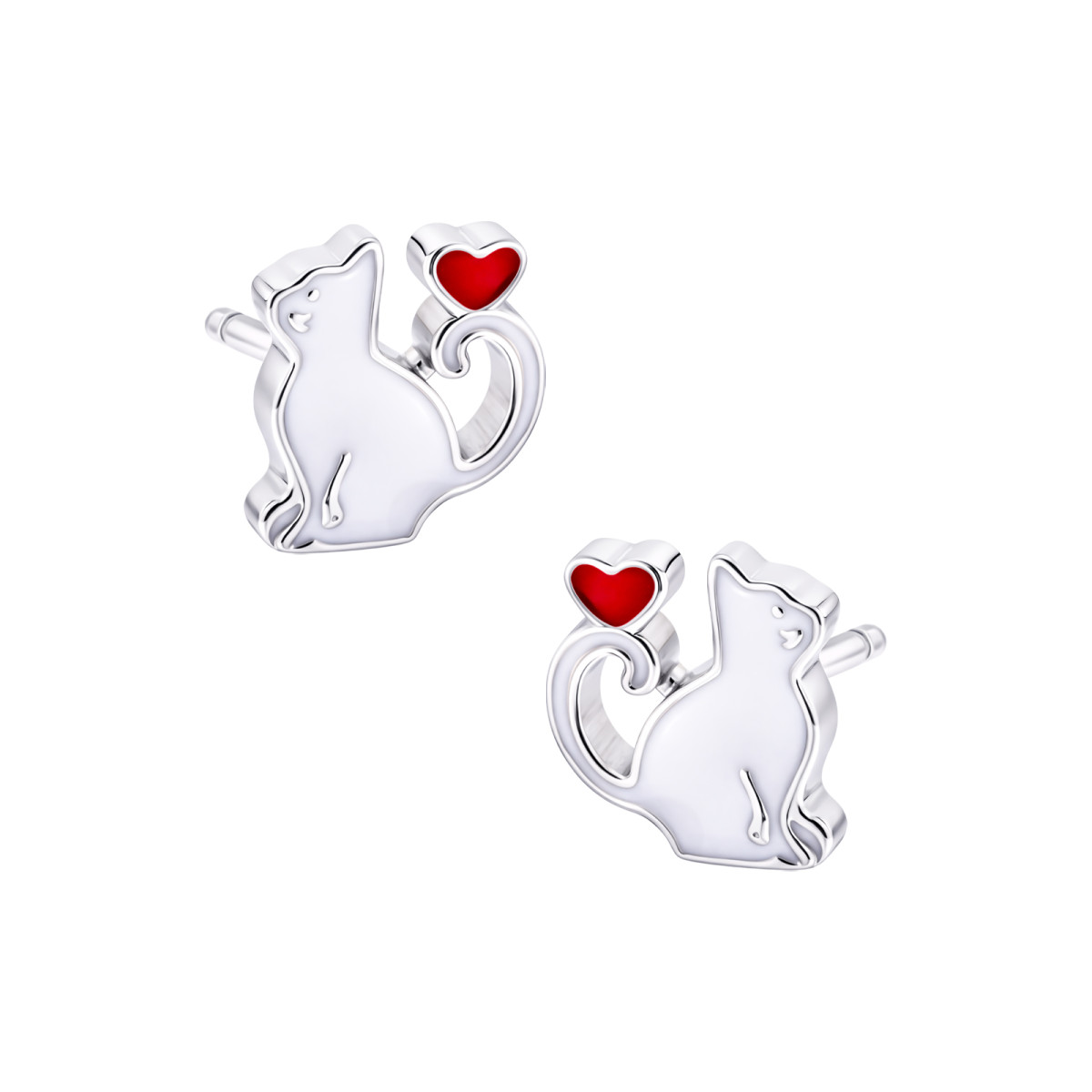 Srebrne kolczyki 925 Biały Kotek z serduszkiem sztyft dla małej damy