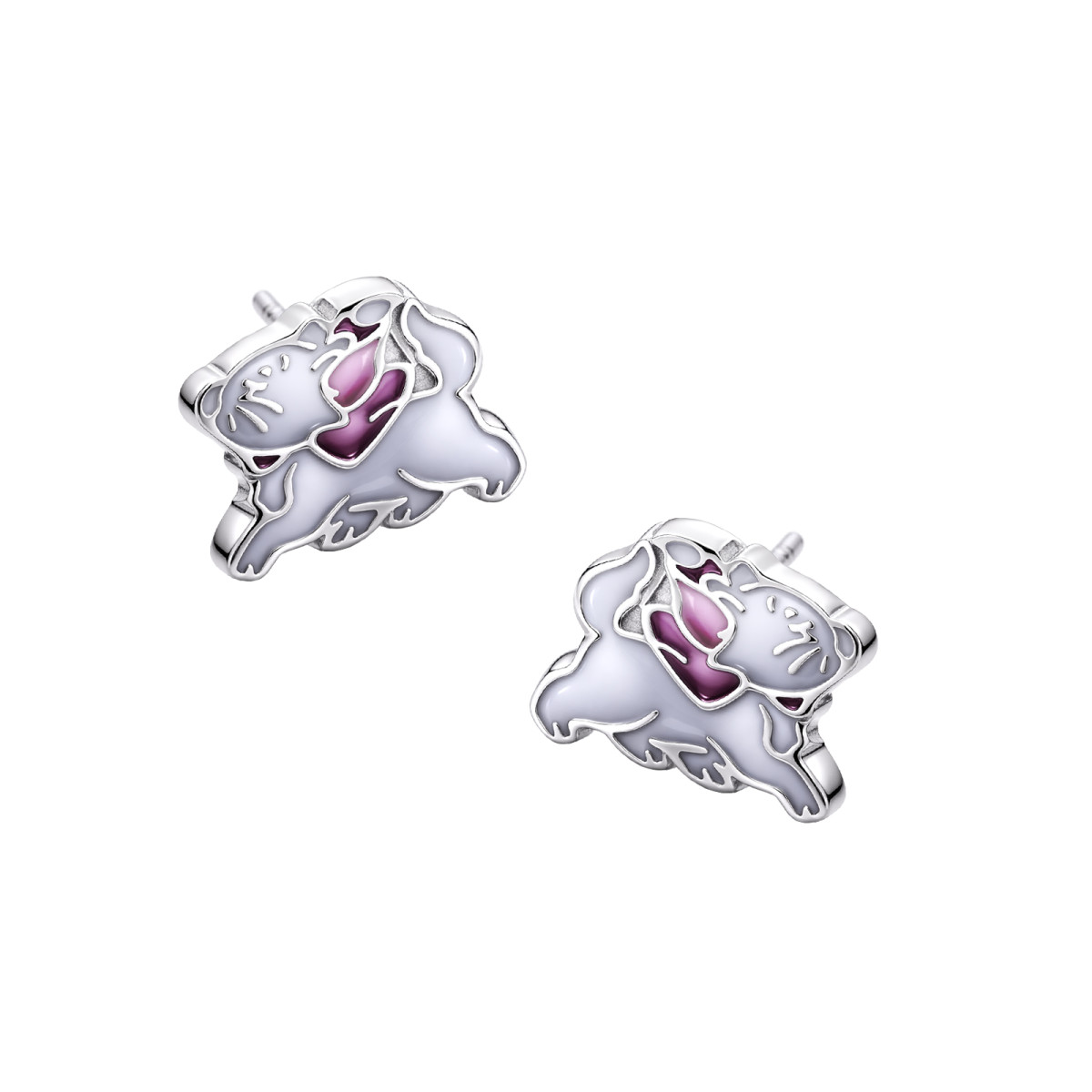 Srebrne kolczyki 925 Biały Kotek dla małej damy sztyft