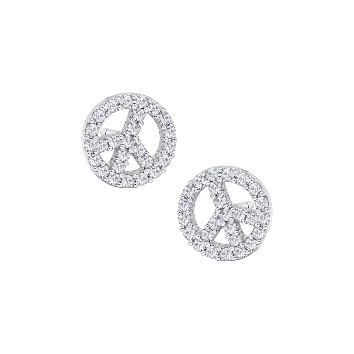 Delikatne kolczyki sztyft wykonane ze srebra próby 925 w formie motywu pacyfki, którego kontury zdobią lśniące białe cyrkonie. Subtelne połączenie gładkiej powierzchni i połyskujących kamieni nadaje kolczykom elegancji i wyjątkowego uroku.