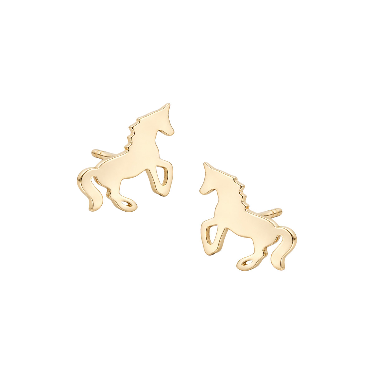 Delikatne kolczyki sztyft wykonane ze srebra próby 925, pozłacane, w formie eleganckiego, gładkiego konia. Minimalistyczny i błyszczący design podkreśla subtelność kolczyków, nadając im wyjątkowego uroku i klasycznej elegancji.