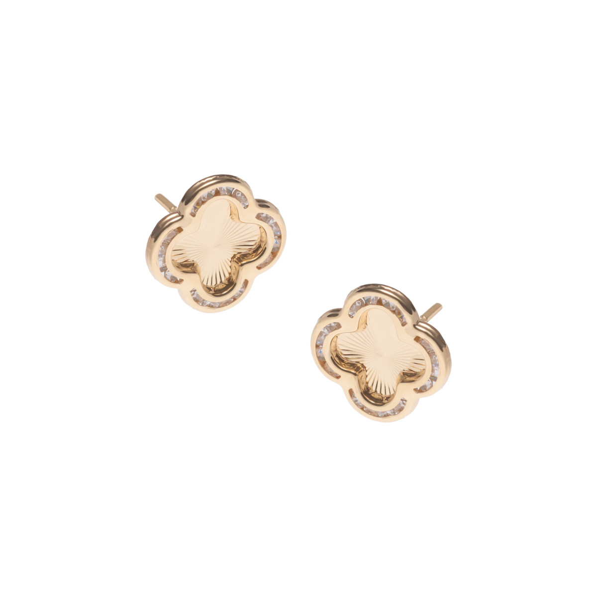 Złote kolczyki 585 Promienista Koniczynka z Cyrkoniami