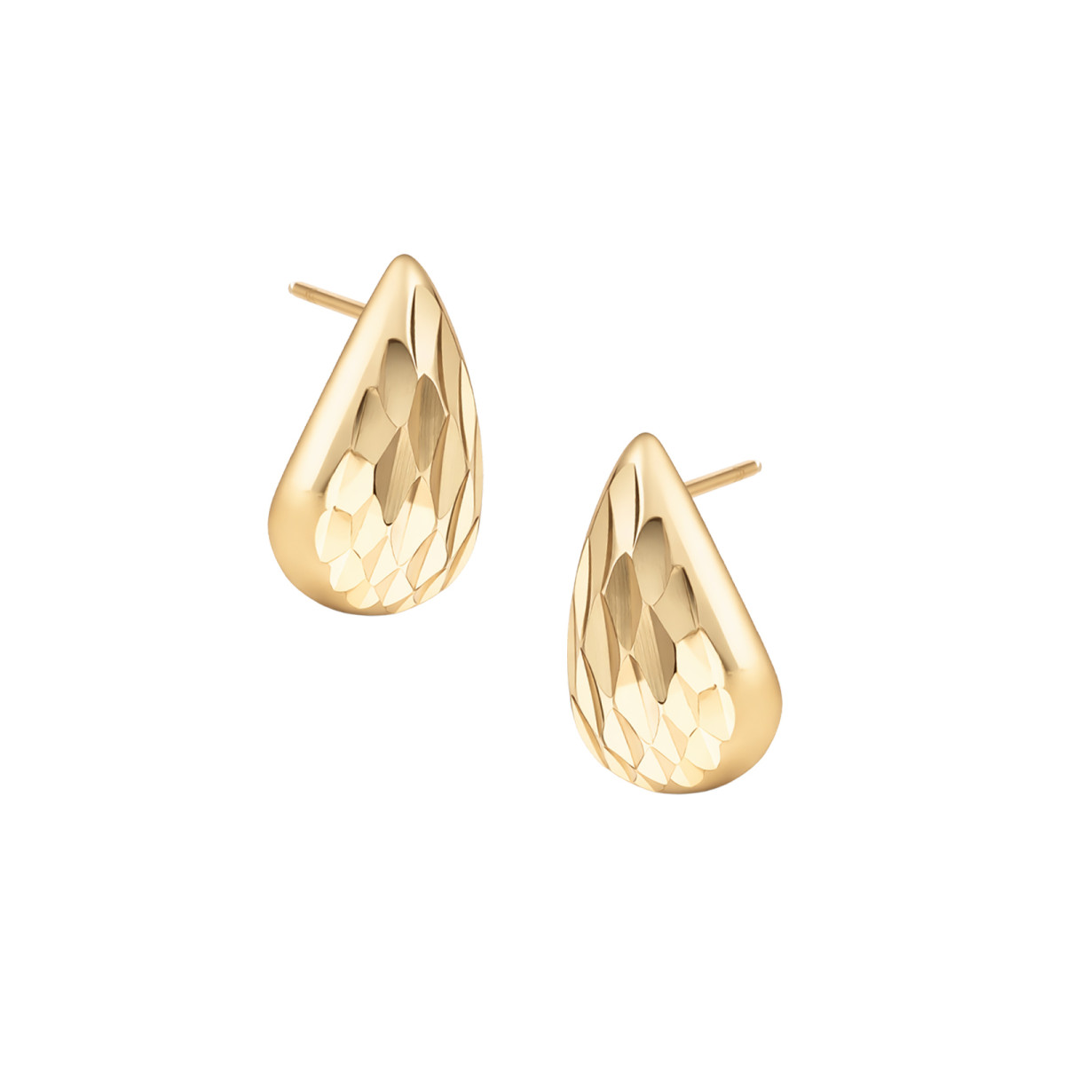 Eleganckie kolczyki srebrne pozłacane próby 925, w kształcie klasycznej kropli typu drop, ozdobione efektownym diamentowanym szlifem. Precyzyjnie wykończona powierzchnia pięknie odbija światło nadając biżuterii luksusowy charakter. Ponadczasowy, a zarazem nowoczesny design sprawia, że kolczyki doskonale uzupełniają zarówno codzienne, jak i eleganckie stylizacje.