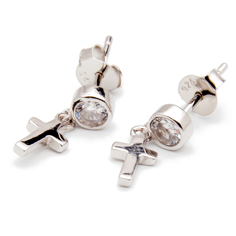 Srebrne kolczyki 925 krzyżyk z cyrkonią