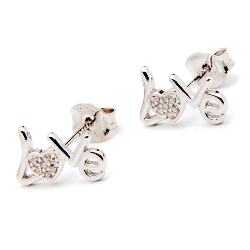 Srebrne kolczyki "Love" cyrkonie