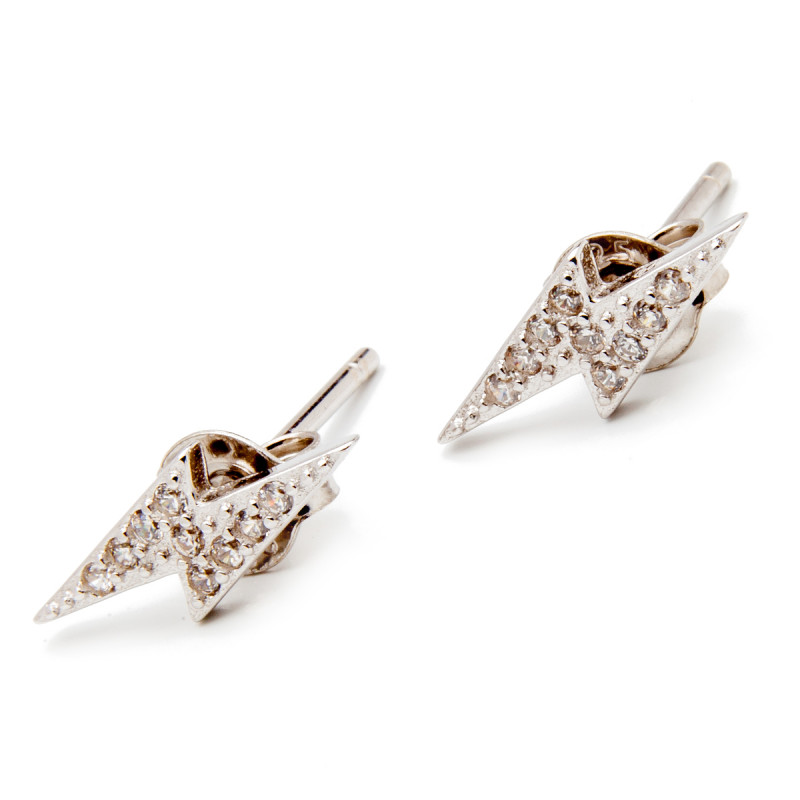 Srebrne kolczyki z motywem błyskawicy z białymi cyrkoniami. Wykonane z lśniącego srebra próba 925. Fabrycznie nowe.