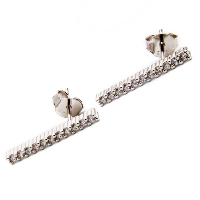 Srebrne kolczyki z paskiem białych cyrkonii. Wykonane z lśniącego srebra próba 925. Fabrycznie nowe.
